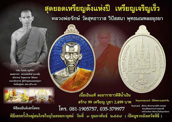 ...หากท่านใดสนใจจะฝากบูชาเหรียญเจริญเร็ว รบกวนติดต่อสอบถามก่อนโอนเงินนะครับ ทาง 089-6766272 หรือ Line ID : jpw1982