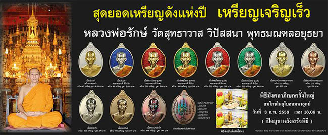 ...พิธีปลุกเสกใหญ่ วันที่ 3 กุมภาพันธ์ พ.ศ. 2558 (ขึ้น 15 ค่ำ เดือน 3) เวลา 16.00 น. เปิดให้บูชาหลังเสร็จพิธี เวลา 19.00 น.