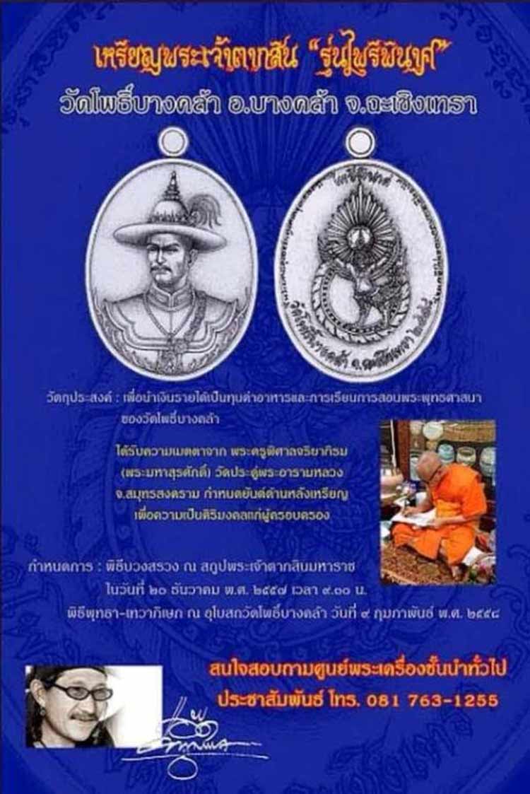 เหรียญพระเจ้าตากสิน "รุ่นไพรีพินาศ" วัดโพธิ์บางคล้า ........ จัดสร้างโดย แอ๊ด คาราบาว