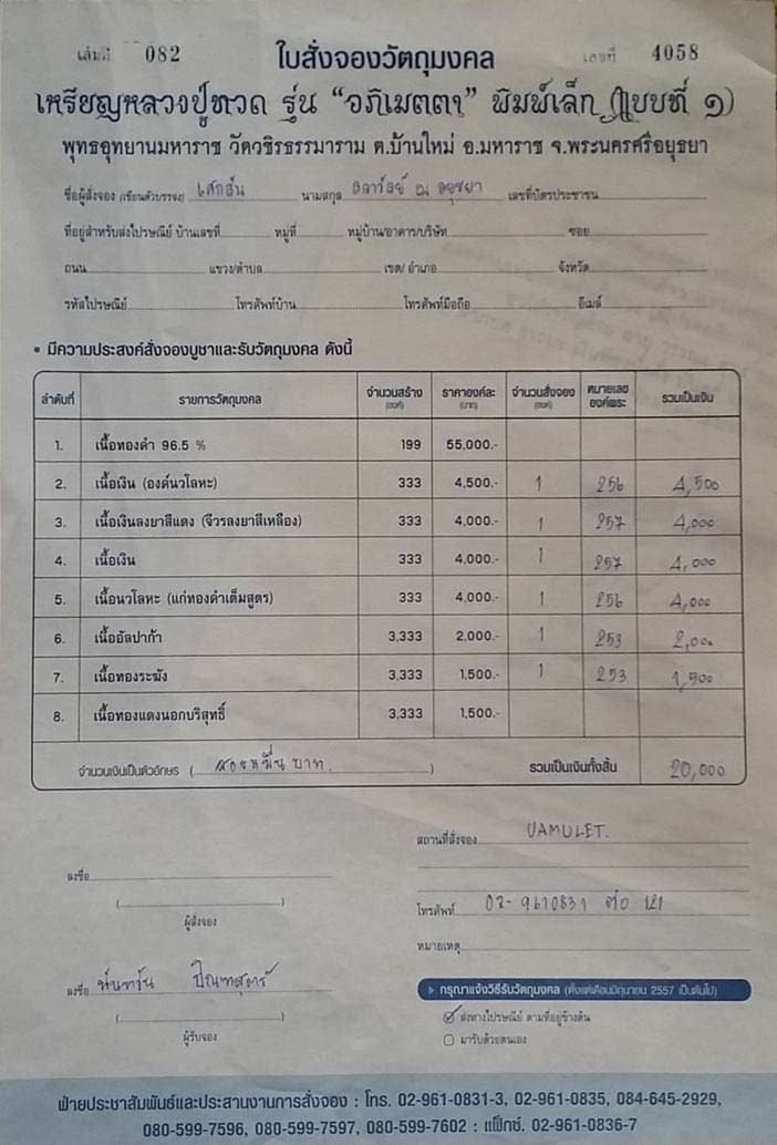 7. เนื้อทองระฆัง ( จัดสร้าง 3,333 องค์ ) ราคา 2,000