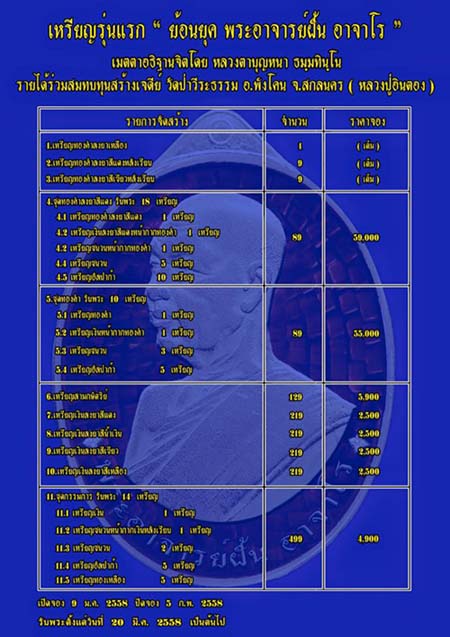 เปิดให้จอง เหรียญย้อนยุครุ่นแรก พระอาจารย์ฝั้น อาจาโร ชุดทองคำลงยาแดง รับพระ 18 เหรียญ