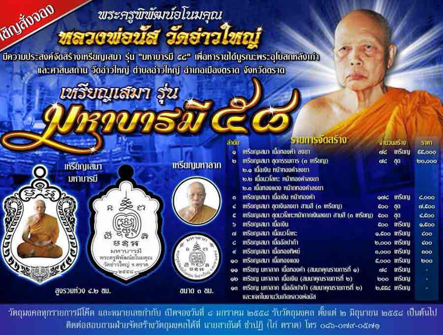 หัวข้อกระทู้ : เปิดจอง เหรียญเสมา รุ่นมหาบารมี ๕๘ หลวงพ่อนัส วัดอ่าวใหญ่ จ.ตราด
