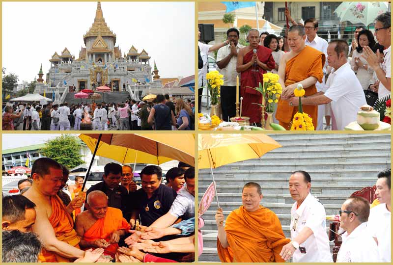 พิธีเททองนำฤกษ์พระกริ่งเนื้อทองคำ"ชินบัญชรธงชัยนะวะหรคุณ" ณ หน้าพระมหามณฑปหลวงพ่อทองคำวัดไตรมิตรฯ กรุงเทพฯ วันที่29 มกราคม2558