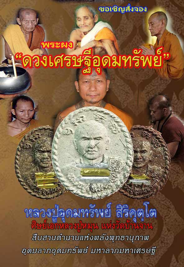 รวมสุดยอดมวลสาร เพื่อสืบสานตำนาน แห่งพระผงดวงเศรษฐี หลวงปู่หมุน ที่นับวันจะหายากและเป็นที่นิยมขึ้นและเป็นที่ปรารถนาของลูกศิษย์หลวงปู่หมุน ท่านอาจารย์หมัน วัดป่าช่องกุ่ม ซึ่งเป็นลูกศิษย์ยุคแรกๆท่านหนึ่งของหลวงปู่หมุน ที่คอยรับใช้หลวงปู่ เป็นหัวเรี่ยวหัวแรงและอยู่เบื้องหลังหลังงานพิธีพุทธาภิเษกต่างๆแทบทุกพิธีของหลวงปู่หมุนและเป็นศิษย์ผู้น้องของท่านหลวงปู่อุดมทรัพย์ ในการนี้ท่านมีความคิดที่จะจัดสร้างรูปเหมือนหลวงปู่หมุนขนาดเท่าองค์จริง จำนวน 16 องค์ เพื่อกระจายไปไว้ที่วัดต่างๆ ที่เกี่ยวข้องกับหลวงปู่หมุน จึงได้ขออนุญาตจากท่าน หลวงปู่อุดมทรัพย์ เพื่อจัดสร้างวัตถุมงคล ที่สืบสานตำนานแห่งพระผงดวงเศรษฐี ที่เต็มเปี่ยมด้วย ประสบการณ์ทางด้าน อุดมโชค โภคทรัพย์ จึงเป็นที่มาแห่งการจัดสร้าง พระผง ดวงเศรษฐีอุดมทรัพย์ โดยท่านหลวงปู่อุดมทรัพย์และท่านอาจารย์หมั่นได้รวบรวมชนวนมวลสารต่างๆ ที่เก็บไว้ในสมัยที่หลวงปู่หมุนยังอยู่และปลุกเสกไว้ให้นำมาผสมกับมวลสารของหลวงปู่ละมัยและผงกสินหลวงปู่สรวง รวมถึงเนื้อพระผงเกจิอาจารย์และผงพระเก่าต่างๆอีกมากมาย นำมาจัดสร้าง พระผง ดวงเศรษฐีอุดมทรัพย์ โดยนำรูปแบบของครูบาอาจารย์คือหลวงปู่หมุนมาจัดสร้าง ซึ่งถือว่าเป็นตำนานจริงๆ เพราะต้องตำนานมากๆ ท่านอาจารย์บอกต้องตำเป็นหมื่นๆสาก มวลสารต่างๆ ท่านอาจารย์หมันท่านตำเองกับมือ ตำไปบริกรรมคาถากำกับไป มะอะอุ อุอะมะ แค่เนื้อพระยังไม่ได้กดพิมพ์ก็สุดยอดแล้ว พระจะเริ่มนำเข้าพิธีปลุกเสกตามวาระต่างหลายพิธี เริ่มต้นพิธีแรก วันที่ 9 ก,พ 58 นี้ที่วัดช่องกุ่มซึ่งมีเกจิอาจารย์ขื่อดังมาร่วมปลุกเสกมากมายและจะทำพิธีปลุกเสกใหญ่ ในวันที่ 9 เม.ย 58 นี้ ที่วัดหนองระกำ จ.ระยอง พระมวลสารสุดยอด จัดสร้างจำนวนน้อย บางรายการ เหลือน้อยแล้ว รีบสั่งจอง ครับ