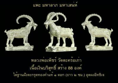 ...เป็นที่ยอมรับกันมาช้านานว่า "แพะ" นั้น จัดว่าเป็นสุดยอดวัตถุมงคลที่ให้คุณทางด้านเมตตามหาเสน่ห์และนำมาซึ่งโชคลาภเงินทอง แก่ผู้บูชา จัดเป็นวัตถุมงคลในตำนาน ที่มีผู้ต้องการเสาะหามาบูชาเป็นอย่างยิ่ง ในวาระนี้ เป็นโอกาสอันดี ที่จะได้เป็นเจ้าของสุดยอดเครื่องรางนี้อีกครั้งหนึ่ง