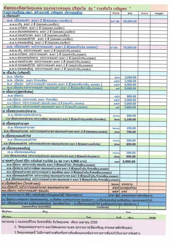 4.1 เนื้อชนวนพระประธานมี 6 เหรียญๆละ 600 บาท