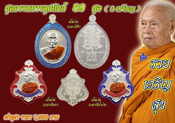 รายการที่ 16 ชุดกรรมการอุปถัมป์ มี 9 ชุด รับพระเนื้อเงินลงยา 3 เหรียญ ชุดละ 7500 บาท
