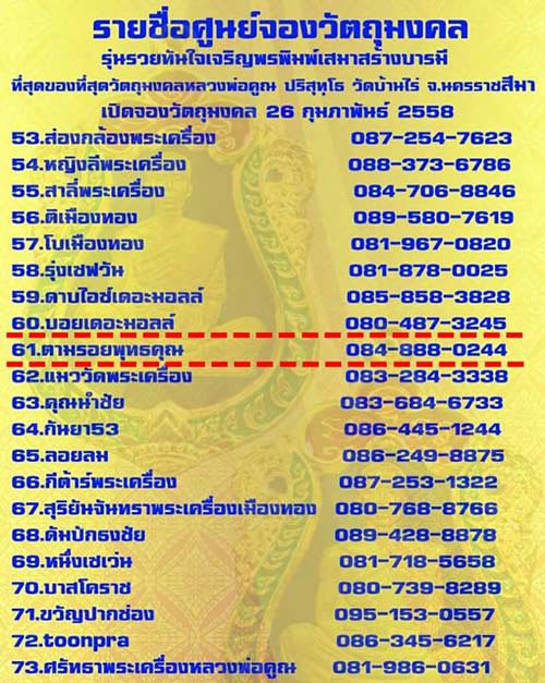 ศูนย์จองที่ 61 เปิดจอง เหรียญเสมา สร้างบารมี หลวงพ่อคูณ ปริสุทโธ