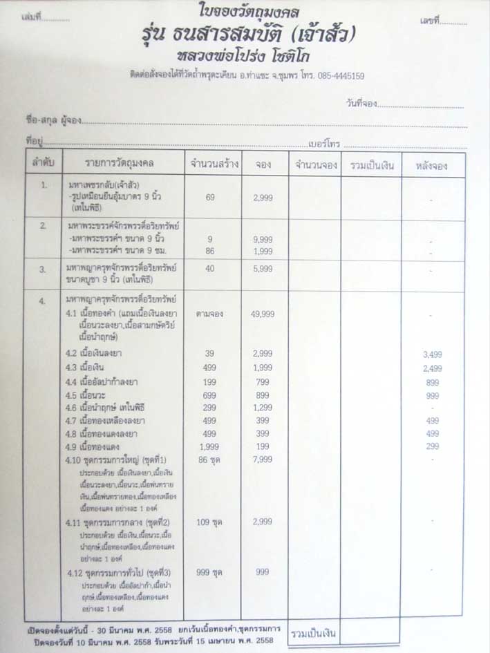 ชุดกรรมการใหญ่ ตามรายการ+นำฤกษ์ 1 องค์ 7999 มียอด 5 ชุด