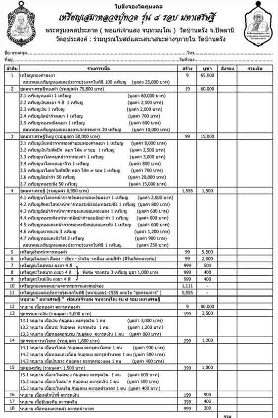 วัตถุประสงค์:ร่วมบูรณะโบสถ์และเสนาสนะต่างๆภายในวัดบ้านตรัง