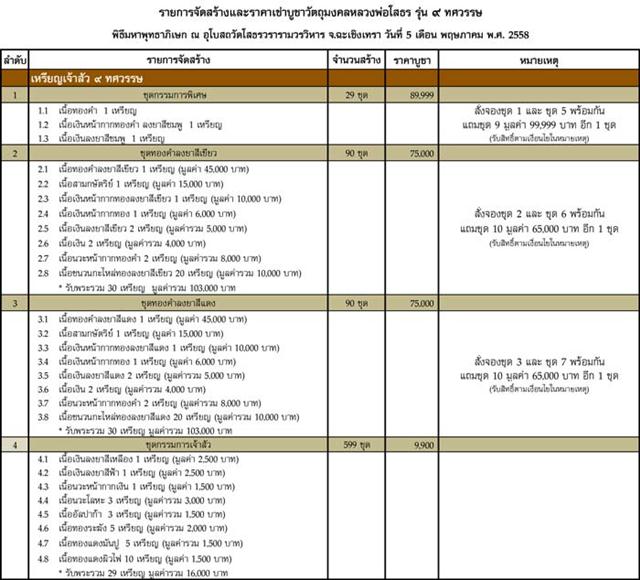รายการที่ 8 ชุดกรรมการเจริญพรบน ( 1 ชุด รับพระ 29 เหรียญ ) มี 2 ชุดๆละ 9,900 บาท