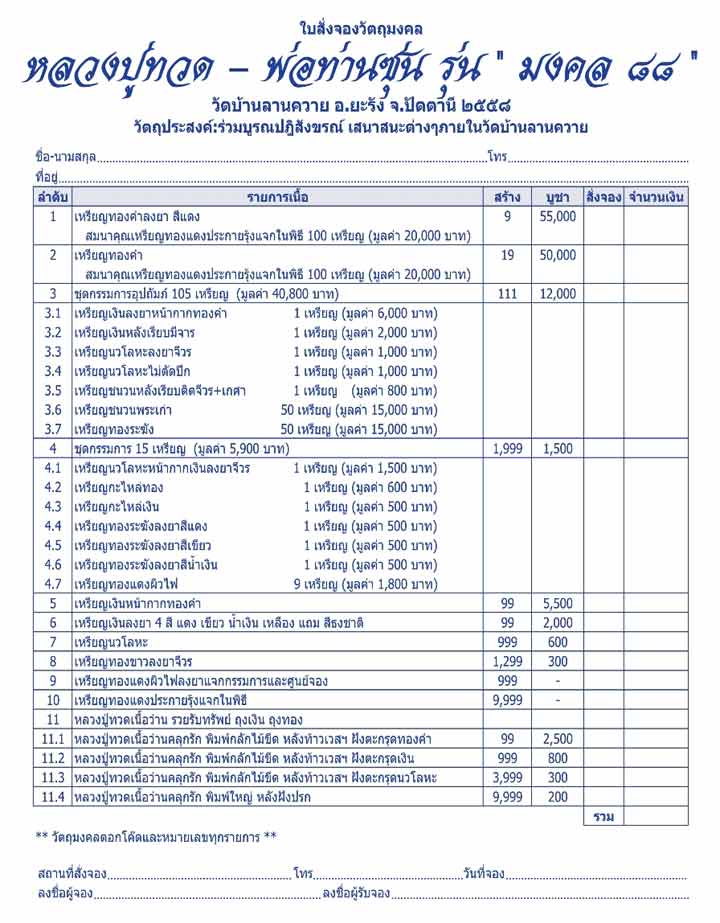 หัวข้อกระทู้ : เปิดจอง"มงคล๘๘" พ่อท่านซุ่น วัดบ้านลานควาย~