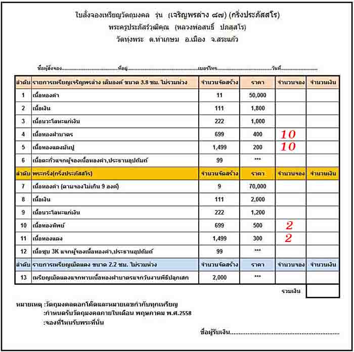 รายการที่ 10 เนื้อทองทิพย์ 2 องค์ๆละ 750.-บาท