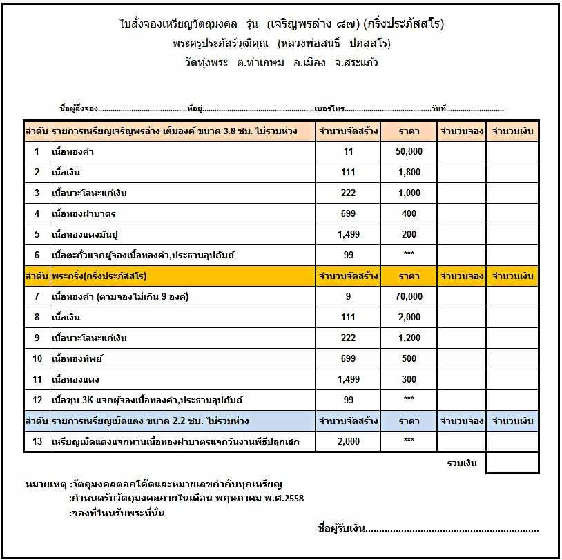 เปิดจอง หลวงพ่อสนธิ์ วัดทุ่งพระ รุ่น เจริญพรล่าง 87
