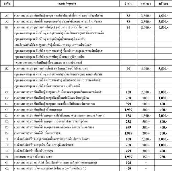 เปิด A1 เนื้อนำฤกษ์ จำนวน การสร้าง 58 องค์ มีจำนวน 1 องค์