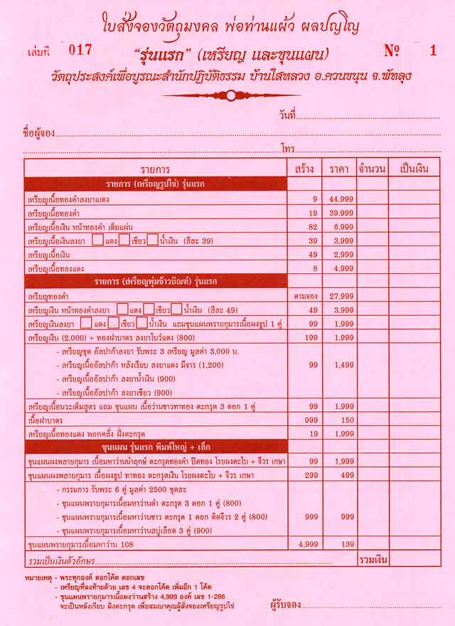 ชุดนำฤกษ์ สร้าง 99 ชุด 1999 มียอด 4 ชุด