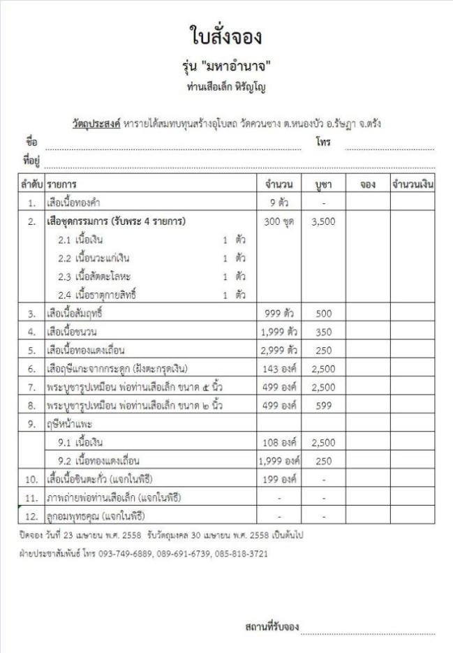 ลูกค้านอกเวปโทรสั่งจองได้ที่เบอน์ 080-984-1175 ไม้มงคล |