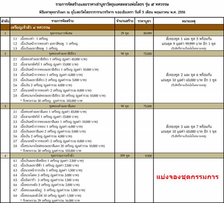 4 ชุดกรรมการเหรียญเจ้าสัว ชุดกรรมการ 9900 บาท สร้าง 599 ชุด แบ่งให้จองราคาวัดค่ะ