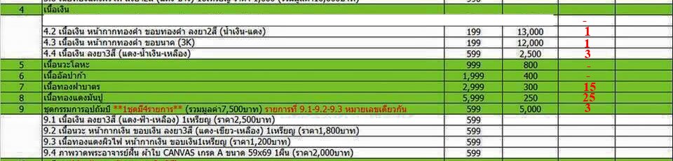 9. ชุดกรรมการอุปถัมป์ (1ชุด มี 4รายการ) จำนวน 3 ชุด ราคา 5000 บาทต่อชุด รับพระดังนี้
