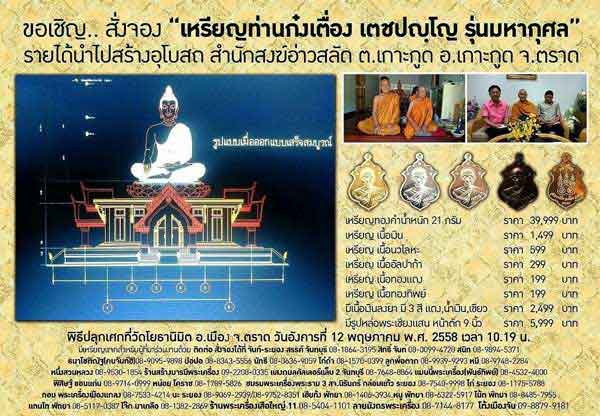 "แมนนี่พระเครื่อง" พันธ์ทิพย์งามวงศ์วานชั้น3 เปิดให้จองเหรียญท่านก๋งเตื่อง เตชปญโญ "รุ่นมหากุศล" จัดสร้างโดยวัดโยธานิมิต จ.ตราด มีค่าจัดส่งทางEMS 100บาทต่อการจัดส่ง1ครั้ง โอนเงินเข้าบัญชี นายยงยุทธ อุดมปริฉัตร ธนาคารกรุงเทพ สาขาประตูน้้ำ เลขบัญชี 106-065450-4 โทร 0845324000 / 0830115678 |