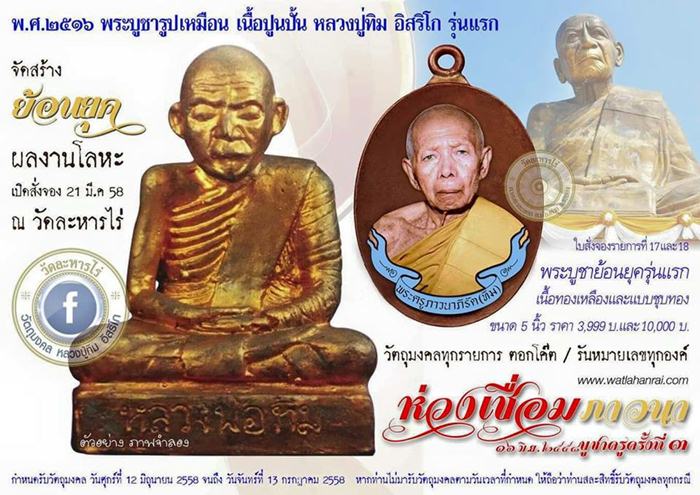 รายการที่ 17 พระบูชาย้อนยุครุ่นแรก เนื้อทองเหลือง 5 นิ้ว สร้าง 399 องค์ มี 1 องค์ องค์ล่ะ 5800 บาท