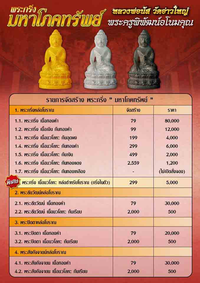 โอนเงินเพื่อสั่งจองบูชา ภายใน 1 วัน หลังจากปิดจอง ได้ที่