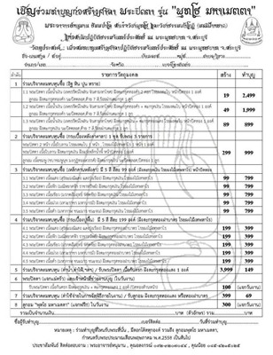 2.ร่วมบริจาคสมทบทุนซื้อ (กระเบื้องหลังคาศาลา) 1 ชุด รับ พระ 3 รายการ ทำบุญ 999.- บาท