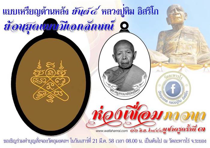 หัวข้อกระทู้ : เปิดยอดจอง เหรียญห่วงเชื่อม (ย้อนยุค) รุ่น ภาวนา หลวงปู่ทิม อิสริโก วัดละหารไร่ 2558