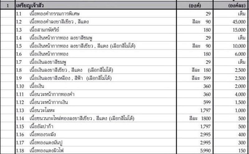 1.3 เนื้อสามกษัตริย์ มีจำนวน 1 เหรียญ เหรียญละ 15,000.- บาท