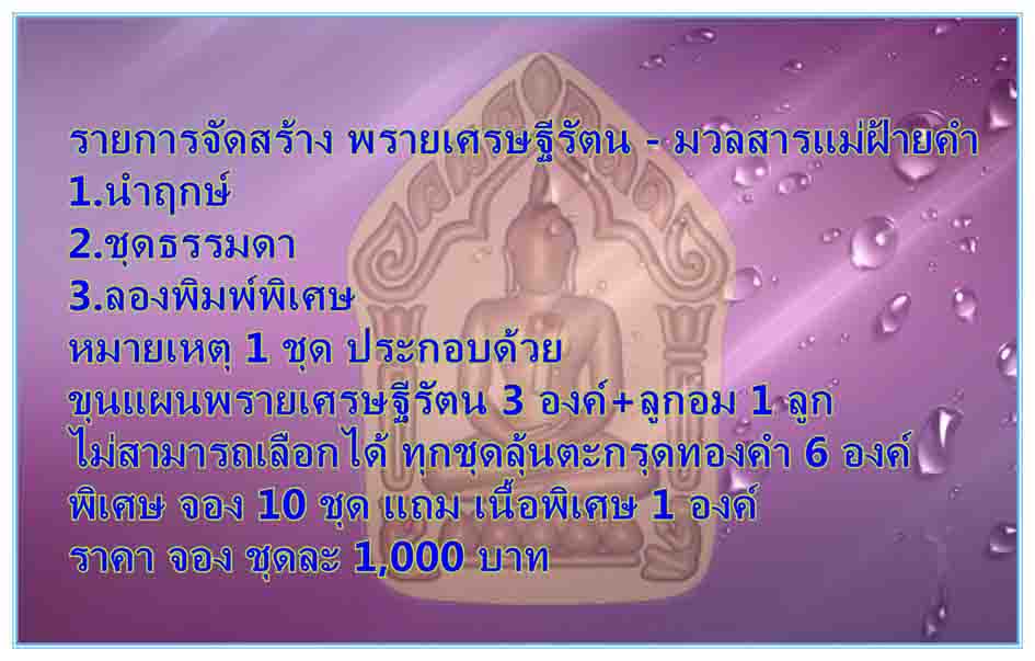 มีการเปิดจองแบบเดียวครับ...ชุดล่ะ 1000 รับพระ 3 องค์+ลูกอม 1 ลูก...ลุ้นทุกเนื้อ