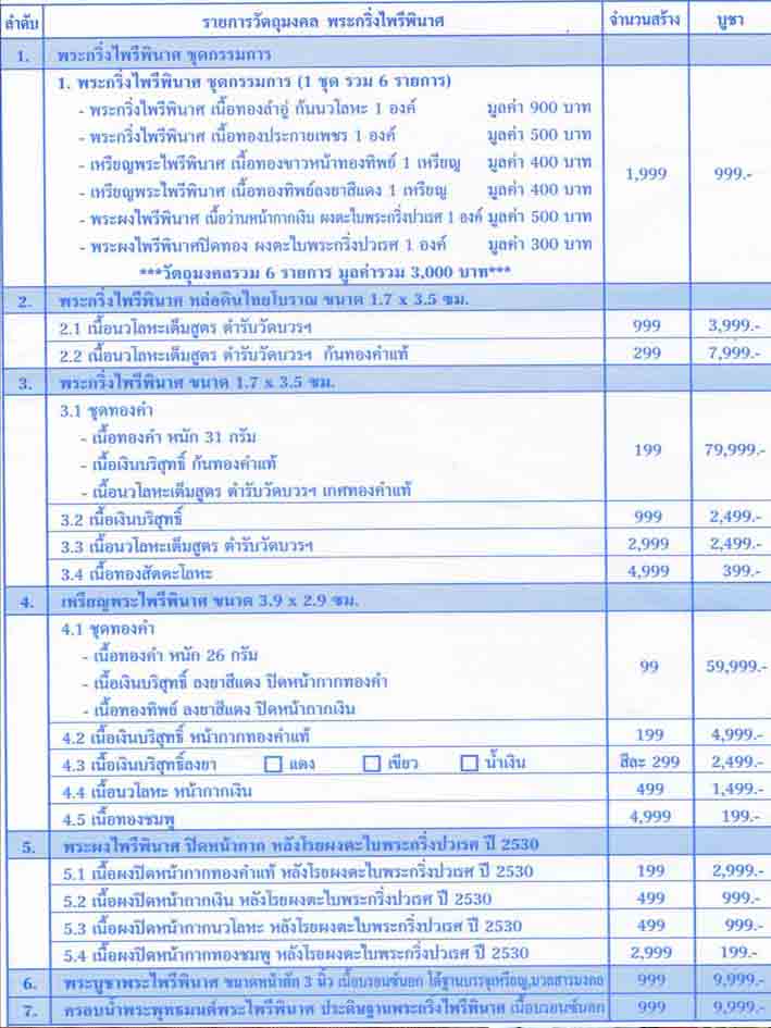 รายการที่ 1. พระกริ่งไพรีพินาศ ชุดกรรมการ (1ชุด รวม 6 รายการ) ..... 1,500 บาท มียอด 4 ชุด