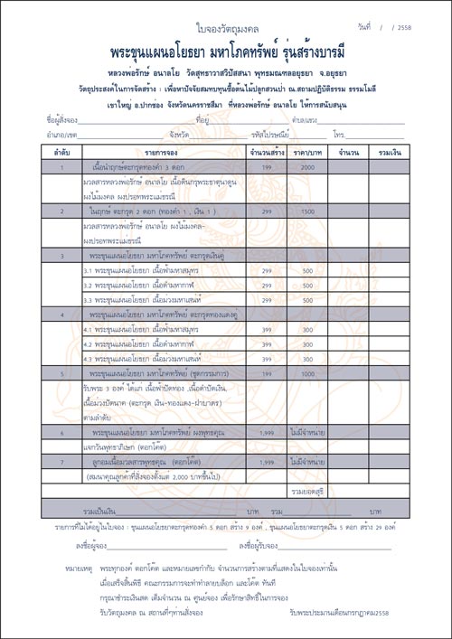 วัตถุประสงค์การจัดสร้าง เพื่อหาปัจจัยให้หลวงพ่อรักษ์