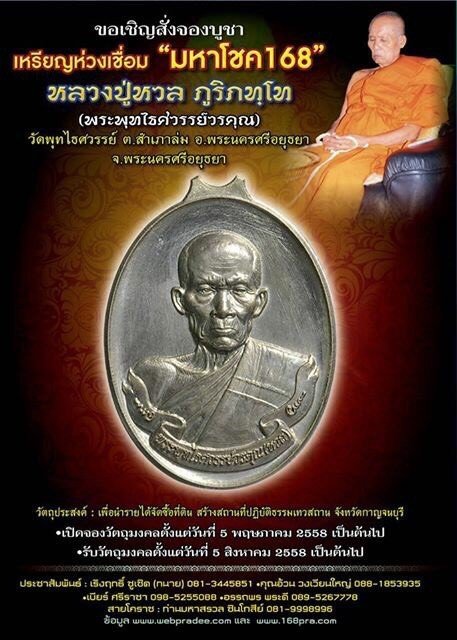 หัวข้อกระทู้ : เปิดจอง เหรียญห่วงเชื่อม "มหาโชค168" หลวงปู่หวล วัดพุทไธศวรรย์ อยุธยา