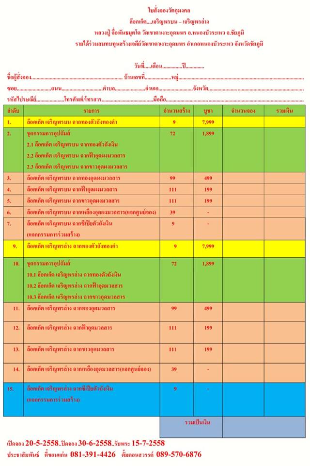 เจริญพรบน ฉากทอง หลังมวลสาร 499 มียอด 2 องค์