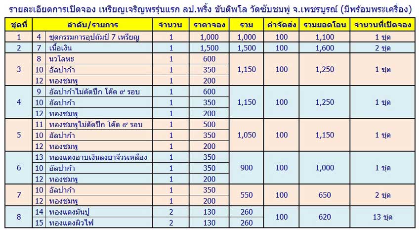 รายการจองตามชุดที่จัดตาตารางเลยครับ เบื้องต้นจำกัดให้คนละ 1 ชุด ครับ
