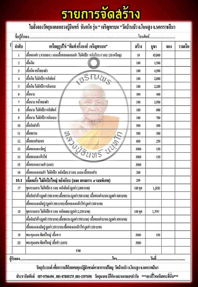 เปิดจอง หลวงปู่อินทร์ นันทโก รุ่น เจริญพร วัดบ้านบัว