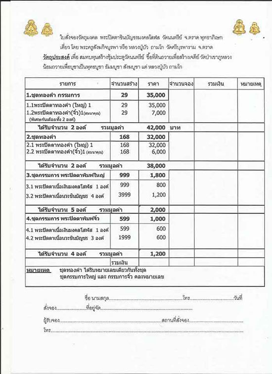 รายการที่ 2 ชุดทองคำ ราคาเปิด 46,000 บาท ได้รับพระ 2 องค์