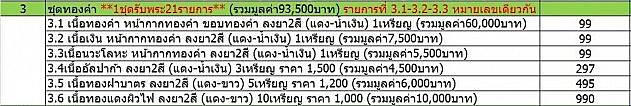 รายการแยกชุดทองคำชุดที่ 3 ราคาจอง+ค่าส่ง50