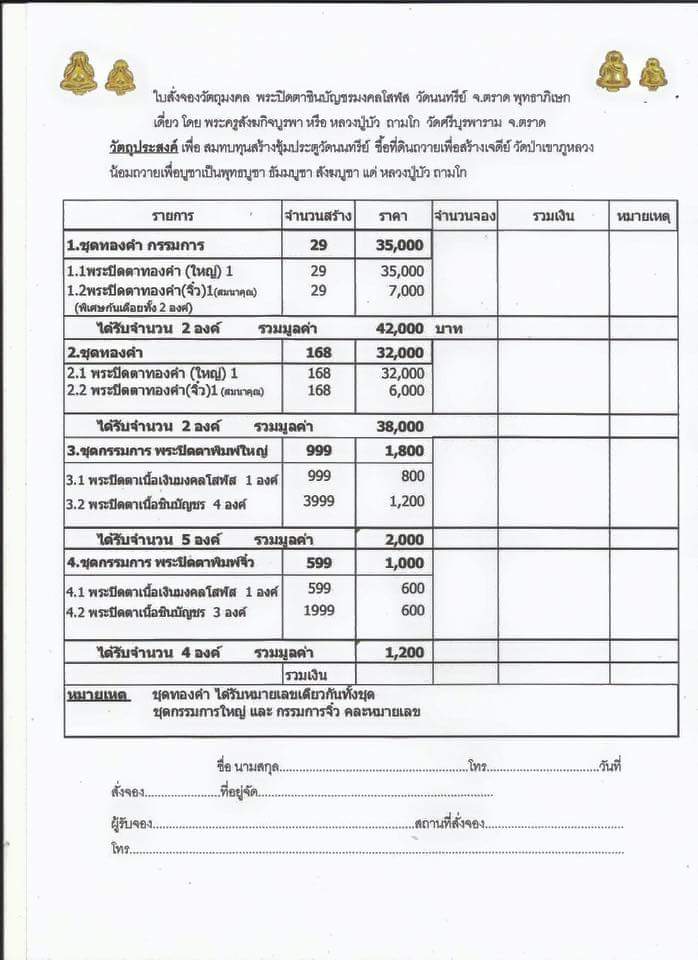 ได้รับ ปิดตาเนื้อเงิน พิมพ์ใหญ่ 1 องค์