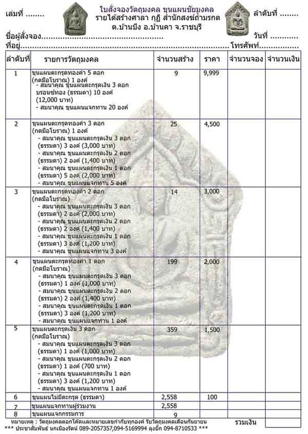 หมายเหตุ ทุกท่านที่ร่วมทำบุญ โอนเงินภายใน 3 วันหลังทำการสั่งจอง ขอบคุณครับ