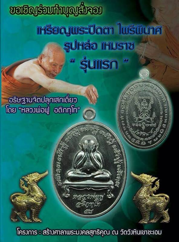 เปิดจองเหรียญพระปิดตาไพรีพินาศ และรูปหล่อเหมราช รุ่นแรก อธิฐานจิตปลุกเสกเดี่ยว โดยหลวงพ่อฟู อติภทโท เพื่อสร้างศาลาพระมงคลสุทธิคุณ ณ.วัดวังหินเขาชะเอม จ.ฉะเชิงเทรา