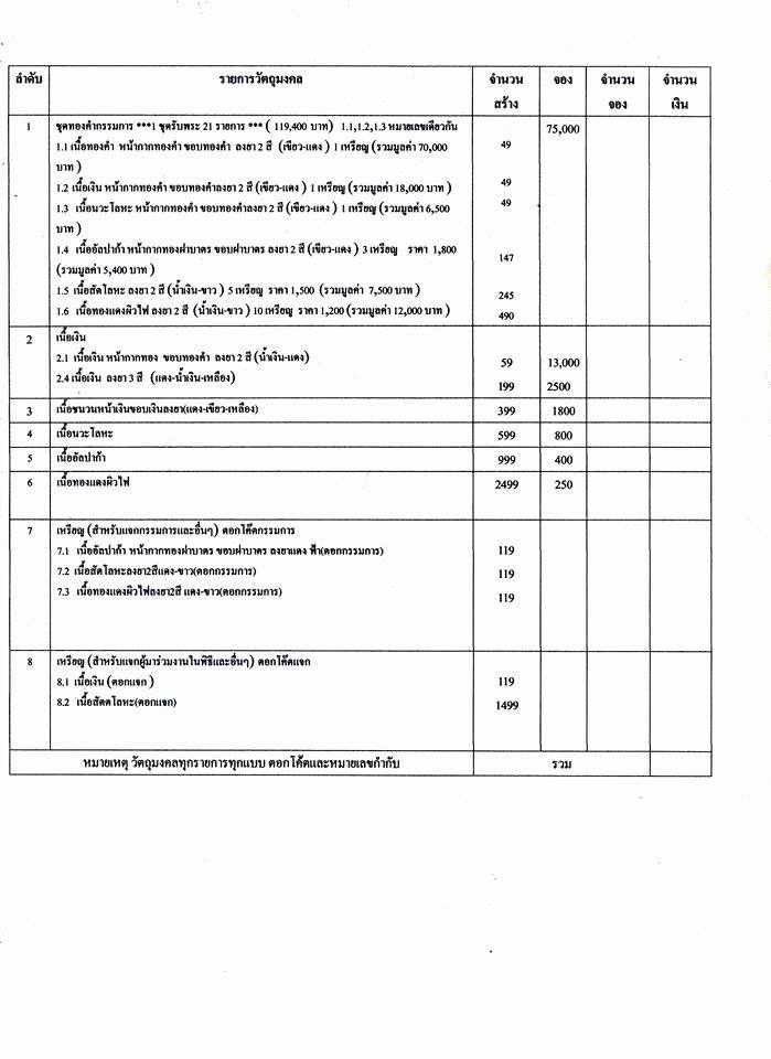 รายการที่ 4. เนื้อนวะโลหะ จำนวนสร้าง 599 เหรียญ มียอด 1 เหรียญๆละ ......1,500 บาท