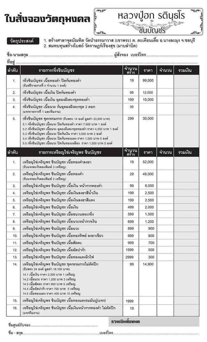 เปิดจองรายการพระกริ่งชินบัญชร ดังนี้