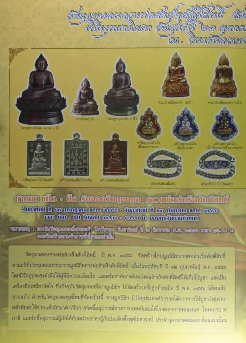 เปิดจองวัตถุมงคล หลวงพ่อสำเร็จศักดิ์สิทธิ์ ปี ๒๕๕๘ (วัตถุมงคลจัดสร้างโดย มูลนิธิหลวงพ่อสำเร็จศักดิ์สิทธิ์)