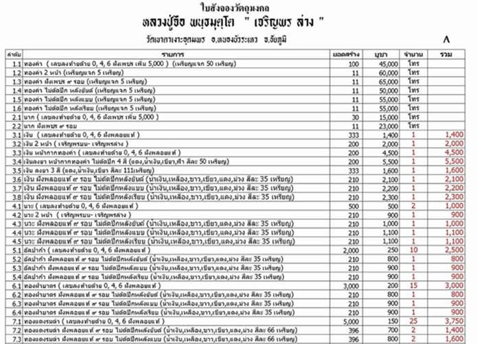 เปิดให้จองราคาวัด ตามรายการค่ะ