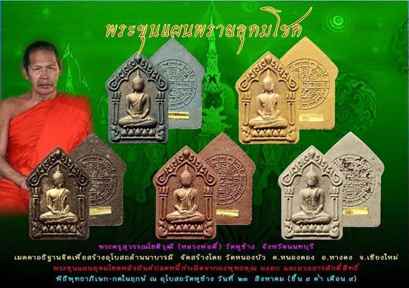 พระขุนแผนอุดมโชคหลังยันต์ปลดหนี้กำเนิดจากผงพุทธคุณ ผงลบ และมวลสารศักดิ์สิทธิ์ ผสมผงพราย พิธีพุทธาภิเษก-กดพิมพ์ในฤกษ์ ณ.อุโบสถวัดหูช้าง วันที่ 23 ส.ค.58 (ขึ้น 9 ค่ำ เดือน 9)