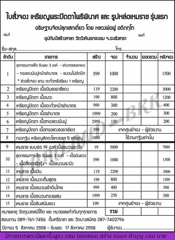 ปิดตาจิ๋ว 1.5 ซม. (แจกซอง) ทำบุญ 100 บาท/ซอง มียอด 15 ซอง