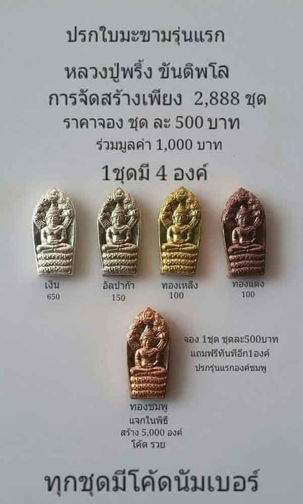 ชุดละ 500 บาท เช่าก่อนสิ้นเดือน แถม ปรกใบมะขาม (แจกในพิธี) 1 องค์ครับ
