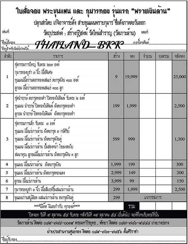 3. ชุดกรรมการเล็ก รับพระ 3 องค์ ราคาจอง 999 บาท