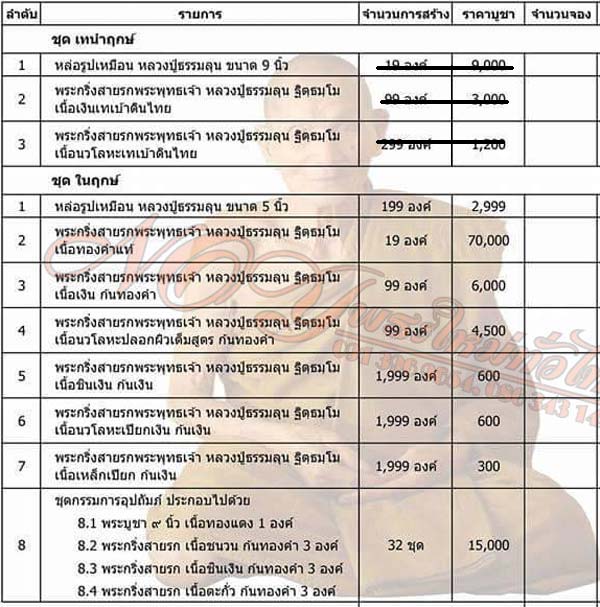 -ชุดพระบูชา 9 นิ้ว สร้าง 32 ชุด ราคา 15,000 บาท